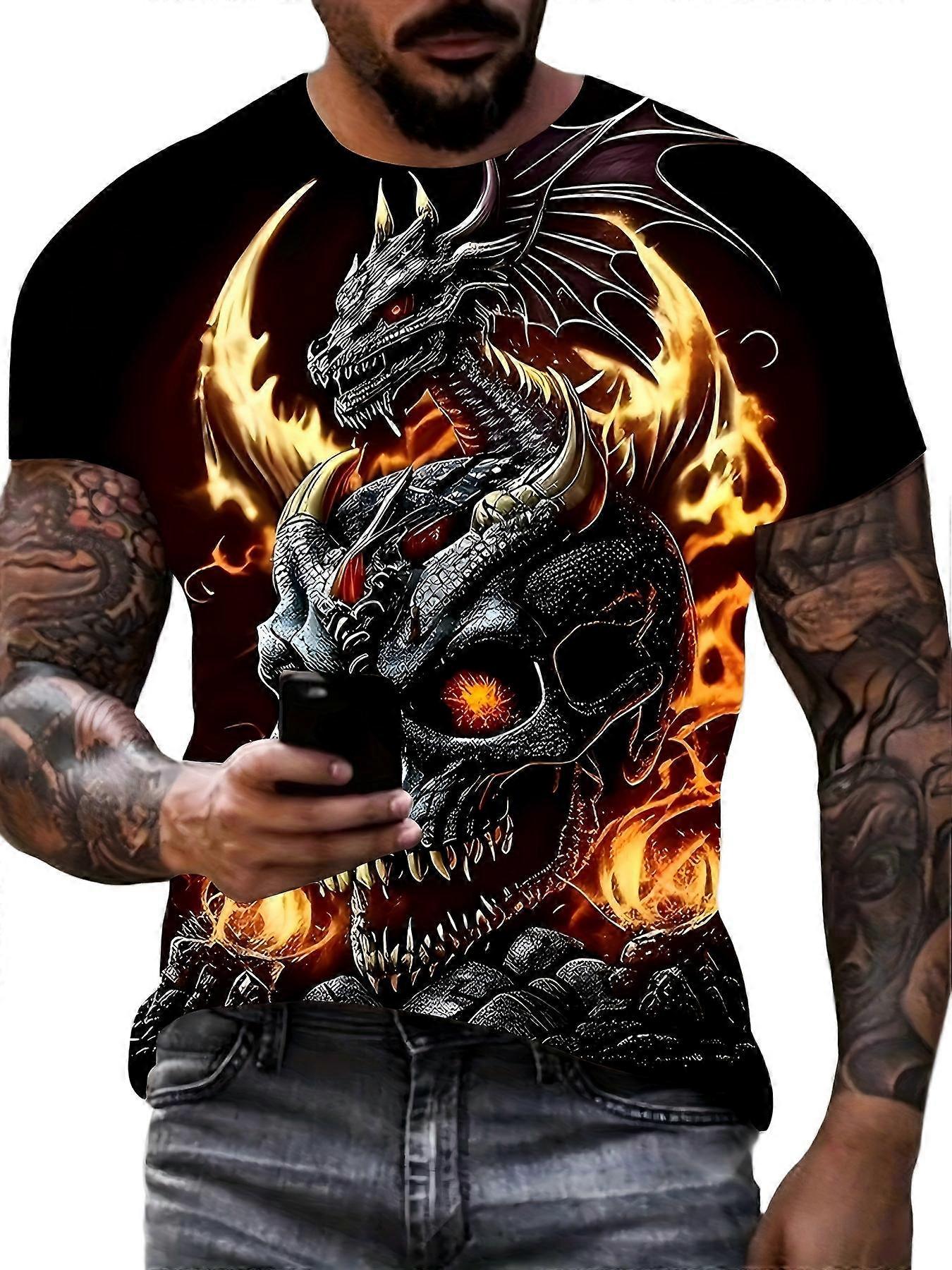 Men’s Fiery Graphic T Shirt Dragon And Skull Scene 3D Print Casual Streetwear Tee