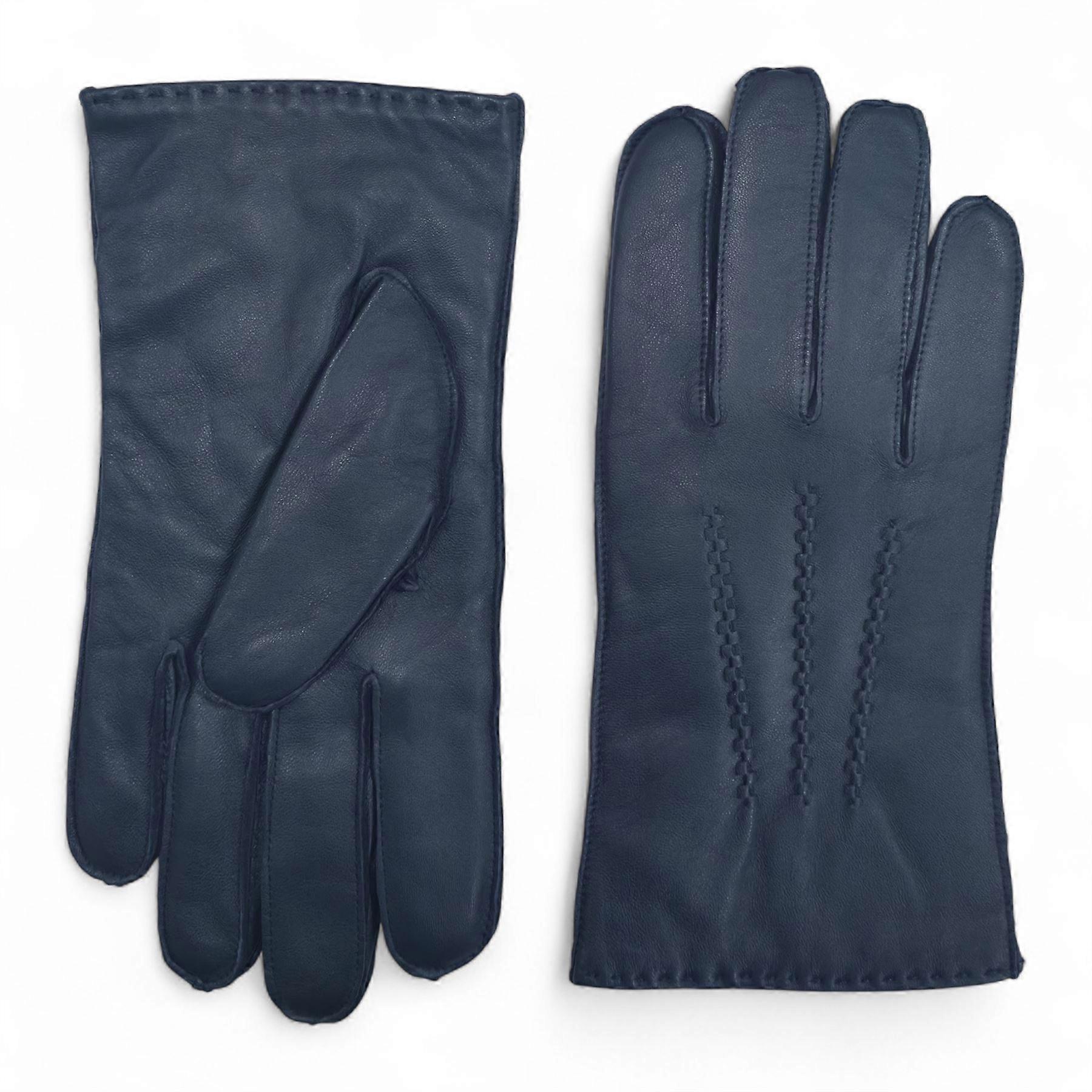 Men’s Navy Blue Italian Leather Warm Wool Lining Winter Stich Design Riding Driving Casual Gloves