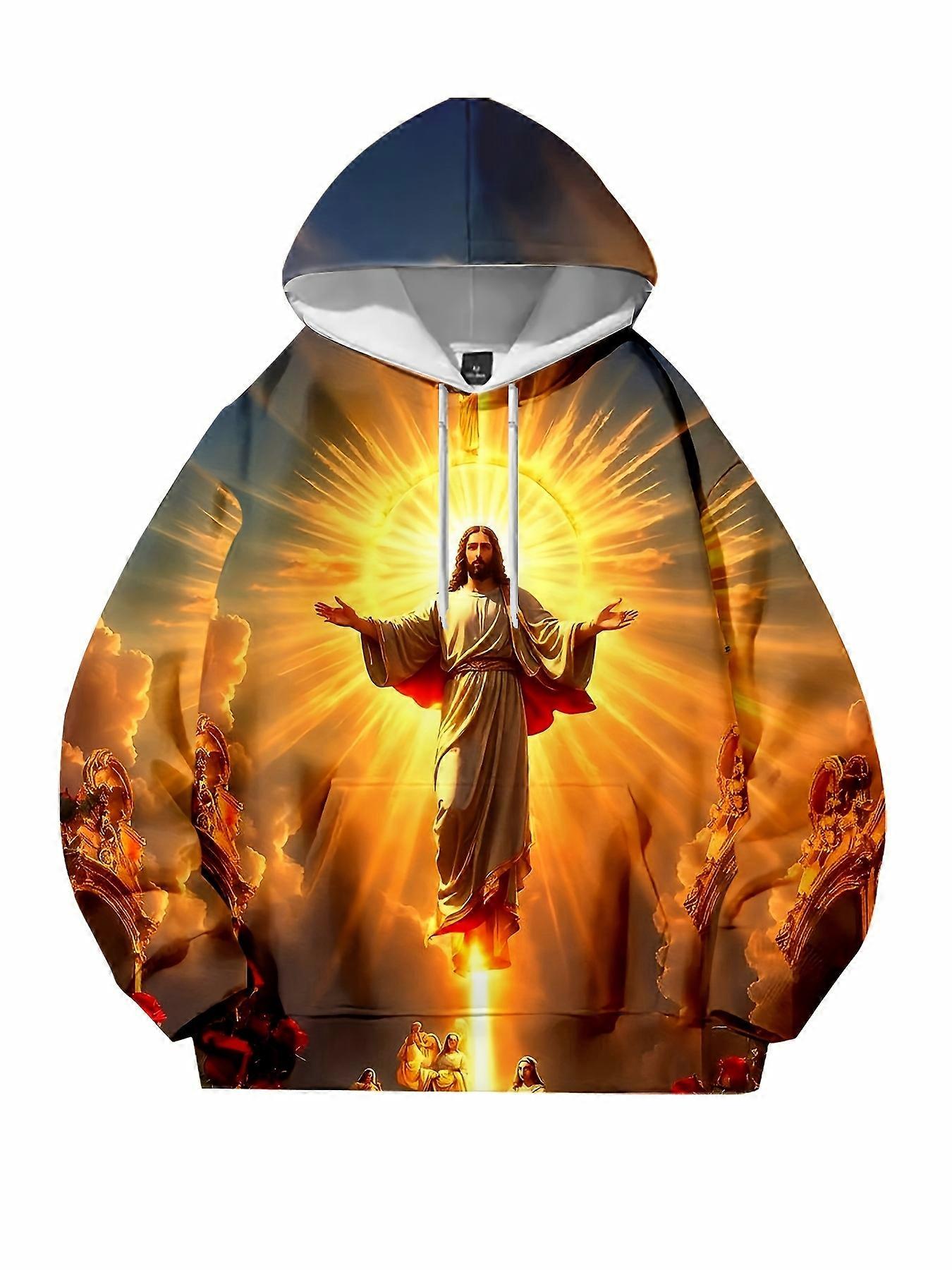Men’s Spiritual Graphic Hoodie Radiant Figure Print Casual Faith Pullover