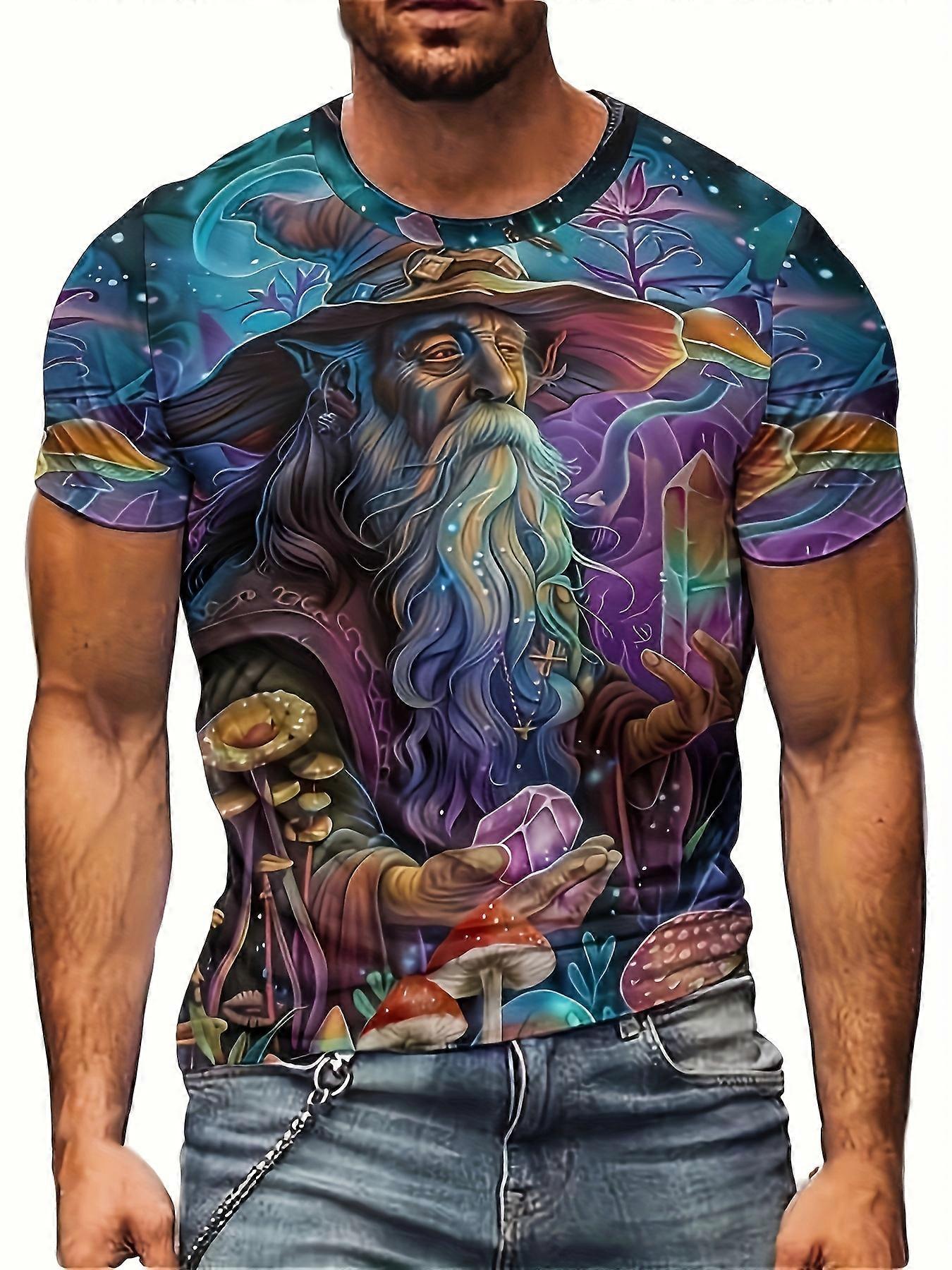 Men’s Vibrant 3D Graphic T Shirt Wizard Mushroom Crystal Print Casual Streetwear Tee