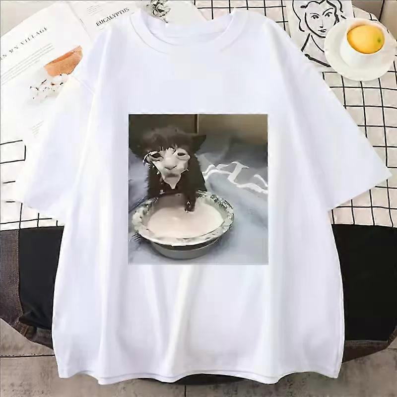 Men Women Milk Face Cat Meme Print T Shirt Humor Funny Cat Graphic T-Shirts Fashion Trend Quality Cotton Oversized Streetwear