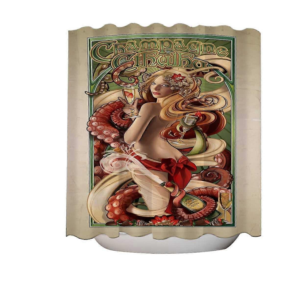 Mens Art Champagne Cthulhu and Sexy Woman Shower Curtain