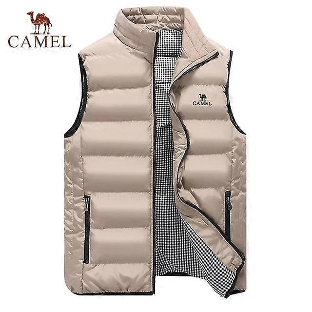 Men's Autumn Winter Cotton Vest Jacket, Embroidered Camel, Fashion Casual