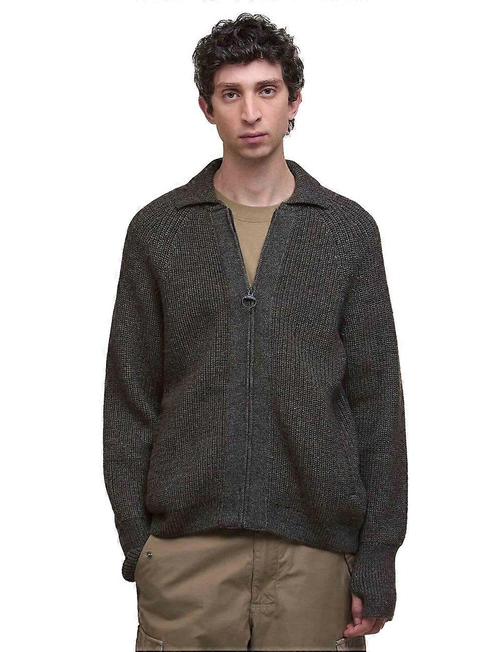 Barbour Garthman Knitted Zip-Up Jumper is a heavyweight layer that leans into Barbour’s heritage knitwear feel while staying easy to wear day to day.  Crafted from 100% wool, it has a substantial, luxurious handle that brings both warmth and texture to cold weather outfits.  The regular fit keeps it comfortable over T-shirts and shirts without feeling bulky.  At the same time, the zip-through front makes it a practical alternative to a jacket on milder days or an ideal mid-layer when the temperature drops.  This is the kind of knit that slots straight into a smart-casual rotation, working just as well with denim as it does with chinos or cords. Thoughtful detailing is what really earns the Garthman its place as a go-to piece.  A roll collar adds extra structure and warmth around the neck, giving it a more refined finish than a standard zip knit.  The contrast knit brings depth and visual interest to the body, nodding to traditional outdoor knitwear while still feeling modern.  The loop zip pull adds a subtle functional touch that is easy to grab with cold hands and ties in neatly with Barbour's focus on purposeful design.  If you are looking for a wool jumper that combines warmth, texture and understated character, this one fits the bill. Founded in 1894 in South Shields, Barbour is known for hard-wearing outerwear built for life outdoors, from classic wax jackets to modern everyday layers.  Please explore our complete Barbour collection to discover more.Barbour Garthman Knitted Zip-Up Jumper Olive Ink 100% wool heavyweight knit for warmth and a substantial feel Regular fit for easy layering over shirts and T-shirts Roll collar and zip-through front for added comfort and versatility Contrast knit detailing for added texture and visual interest Finished with subtle Barbour detailing that reflects the brand's knitwear heritage MKN1649OL52 Description By: APM