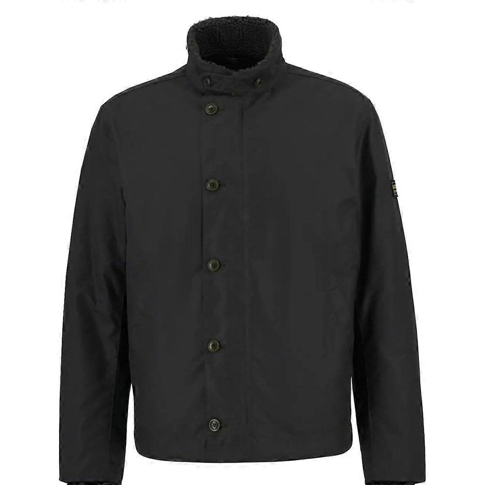 Barbour International Men's Black Mayburn Wax Jacket. Features a fleece collar, Zip and button fastenings, pockets and storm cuffs. Barbour International logo to left sleeve. Made from waxed cotton.Waxed Cotton Thorn proof Water resistant