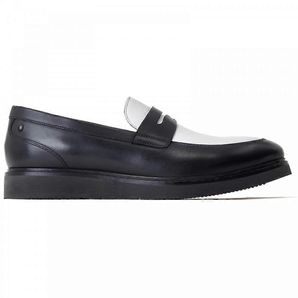 Men's Base London Sid | Black/White | Mens Slip On Penny Loafers