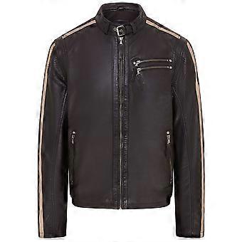 Mens Black Cafe Racer Striped Leather Jacket Vintage Biker Motorcycle Jacket
