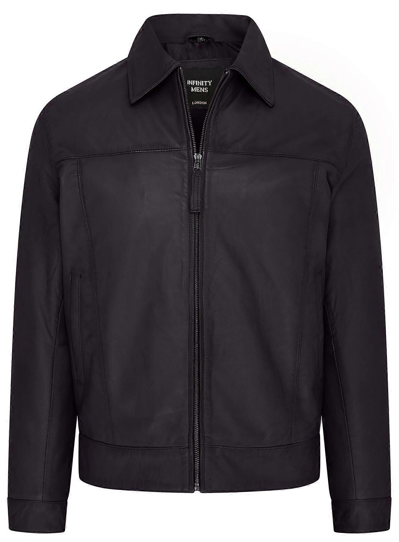 Mens Black Retro Black 100% Nappa Leather Harington Biker Jacket