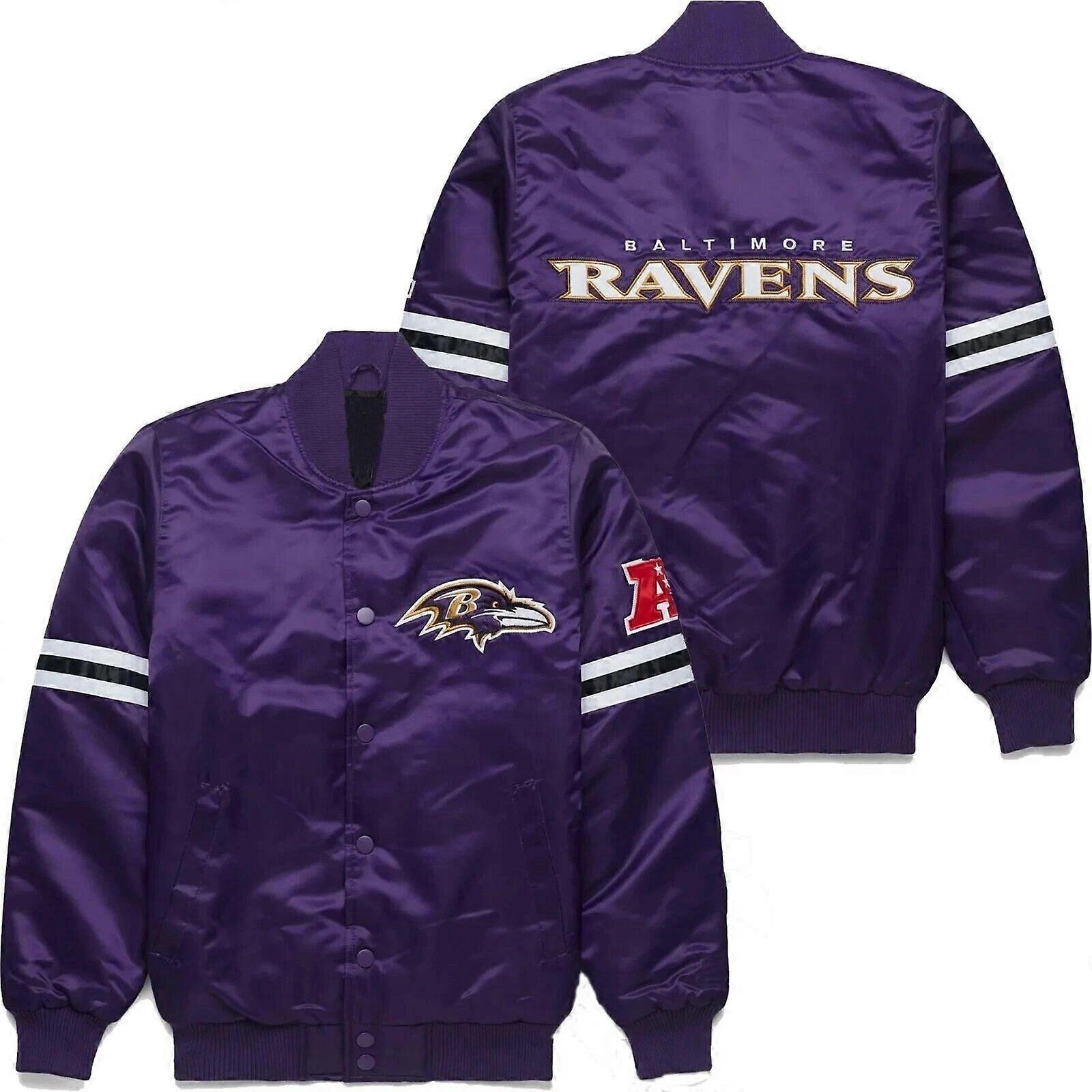 Men's Bm Ravens Satin Bomber Style Baseball Letterman Varsity League Jacket-036