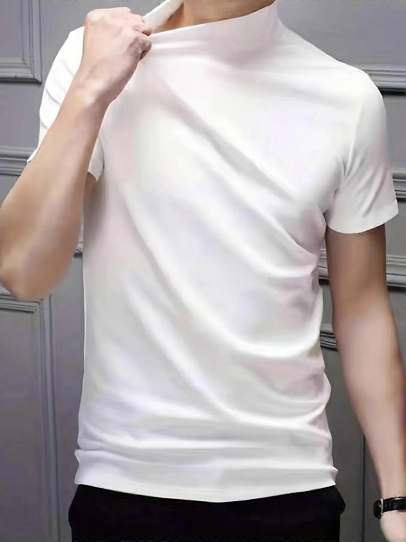 Men's Breathable High Neck Stretch Base Layer Top, Short Sleeve, Soft & Comfy