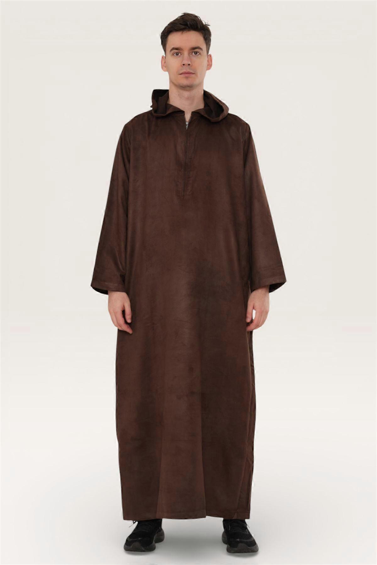 Men's Brown Hooded Moroccan Djellaba Jubba Robe Tassel Zipped Ramadan Eid Thobe