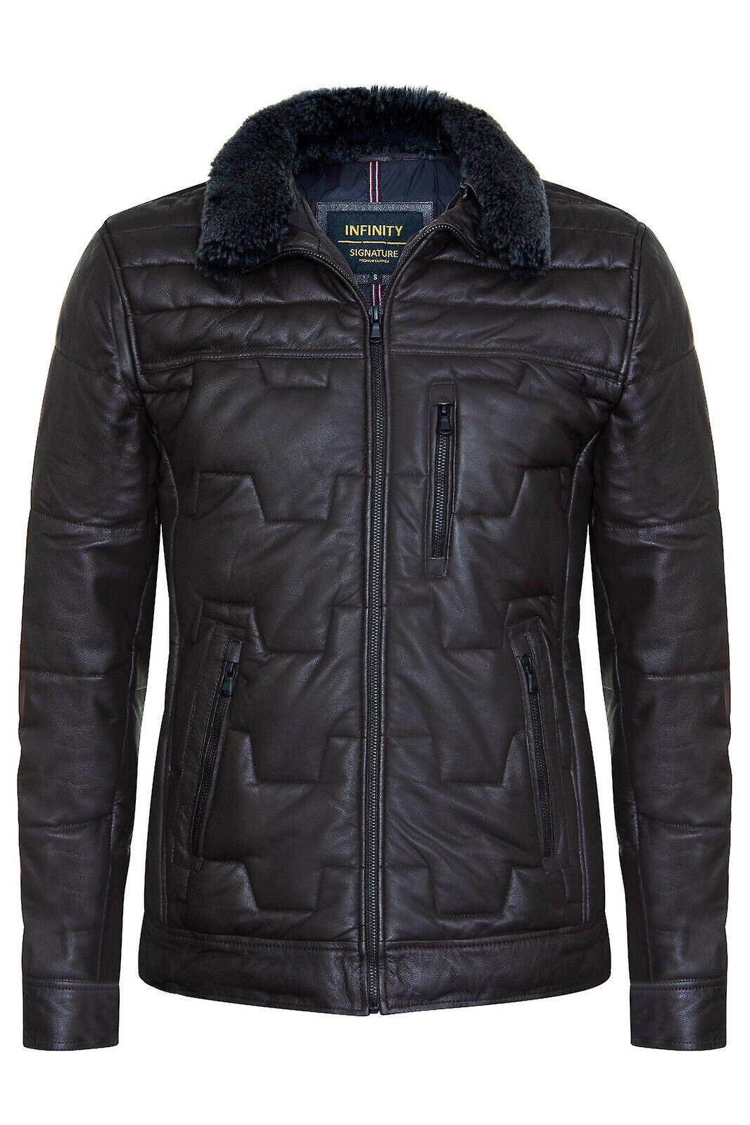 Men's Brown Puffer Leather Jacket Quilted Bomber Warm Lambskin Biker Jacket