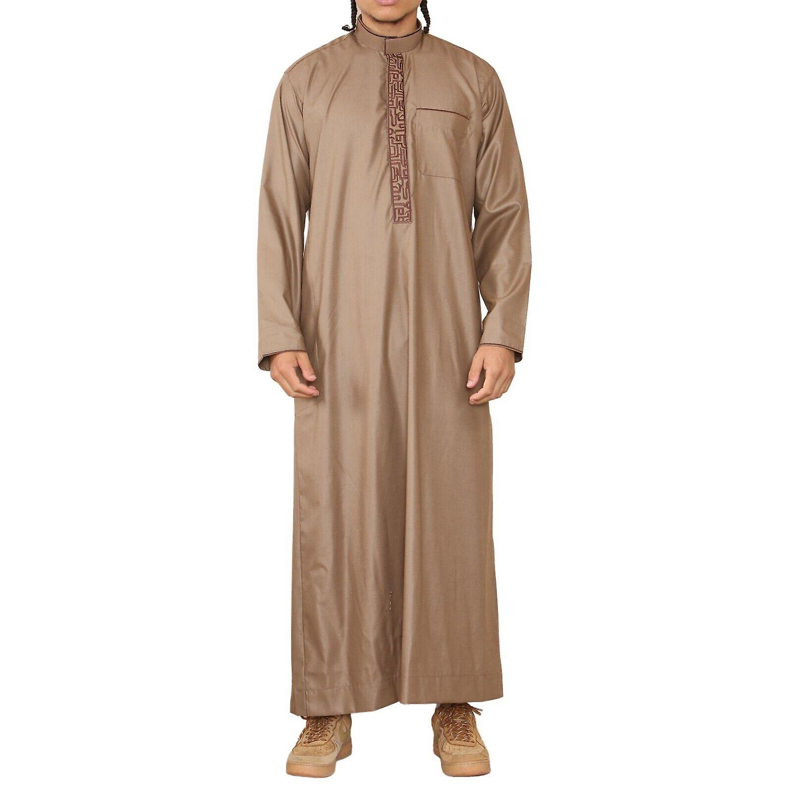 Mens Brown Thobe Jubba Emirati Islamic Arabic Eid Embroidery Kaftan Jubbah Robe