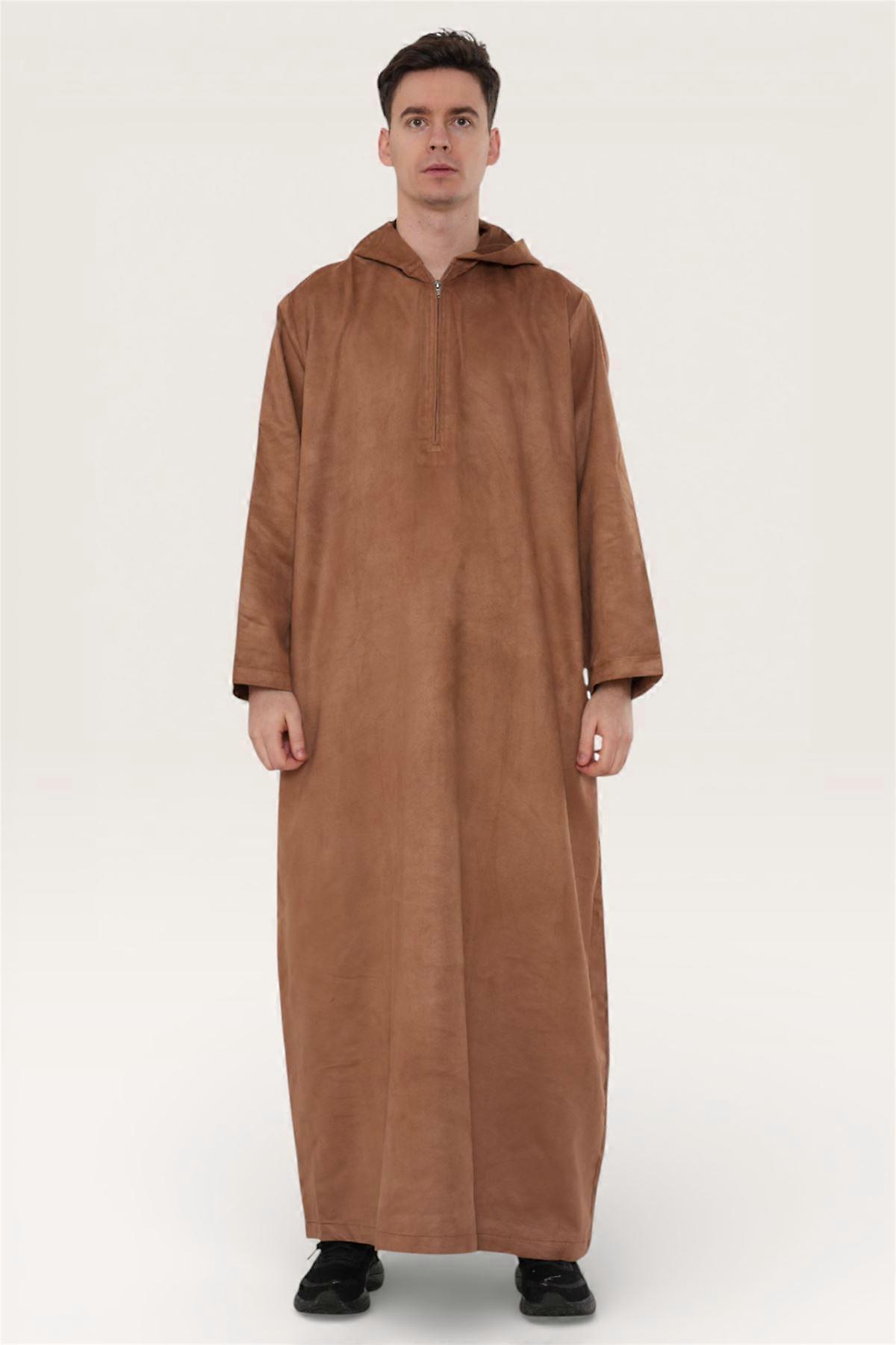 Men's Camel Brown Hooded Moroccan Djellaba Jubba Robe Tassel Zipped Ramadan Eid Thobe