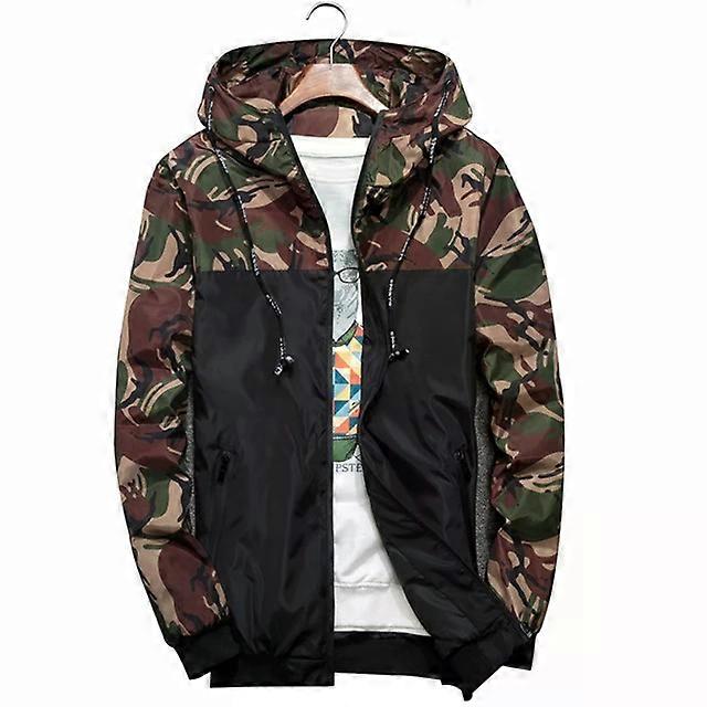Men's Camouflage Bomber Jacket-Slim Fit,Hooded,Long Sleeve,Size L Green,L