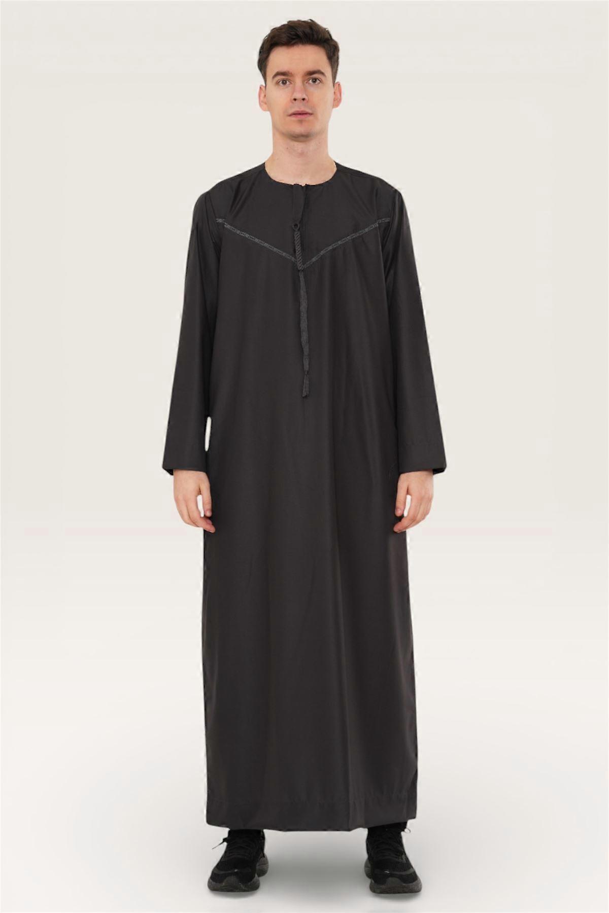 Men's Charcoal Black Ramadan Moroccan Thobe Eid Djellaba Tassel Robe Islamic Jubba