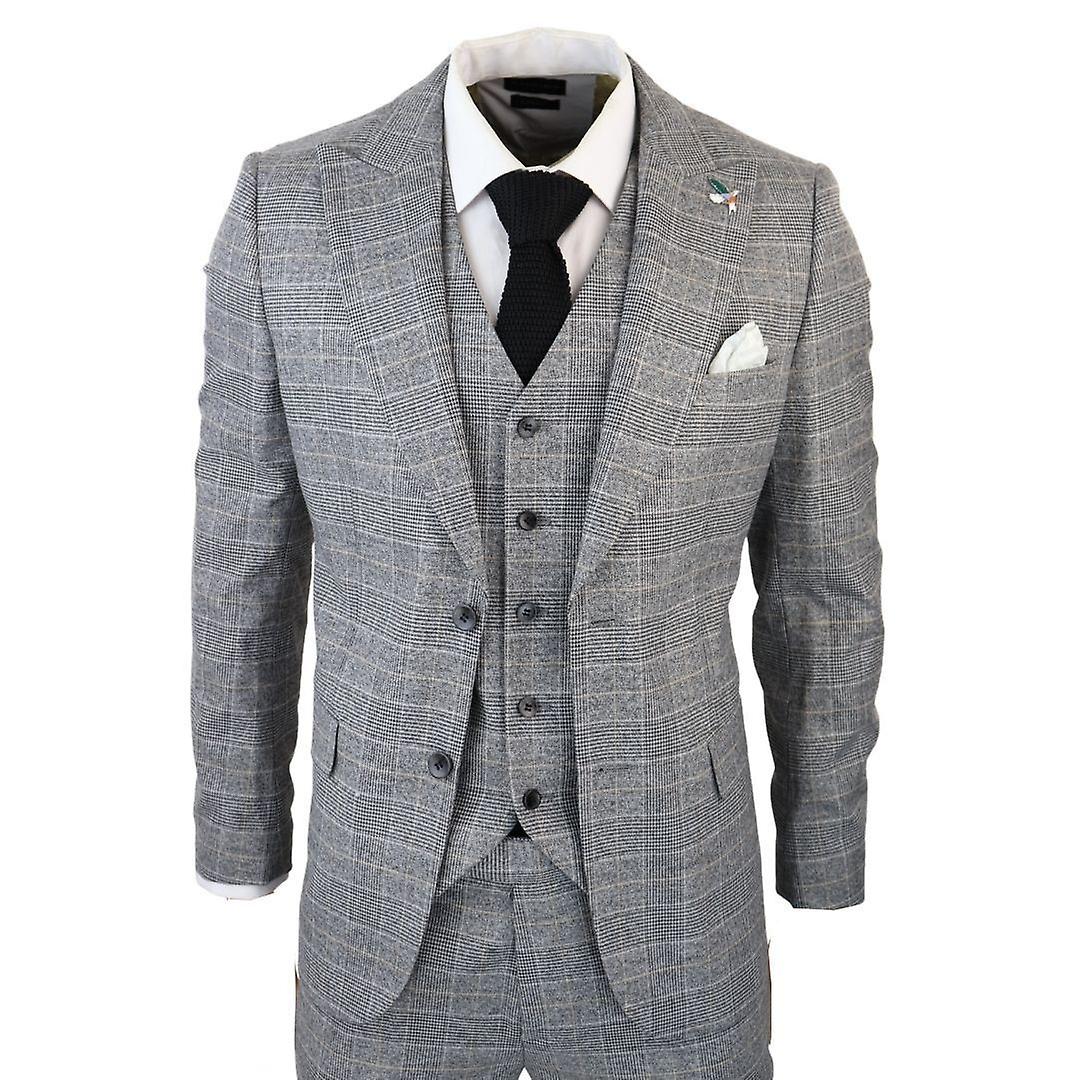 Men's Check Grey 3 Piece Prince Of Wales Suit