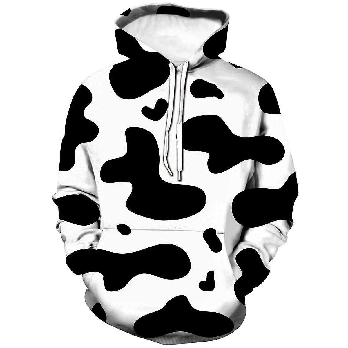 Men's Cow Print Graphic Hoodie Monochrome Pattern Pullover Playful Casual Top