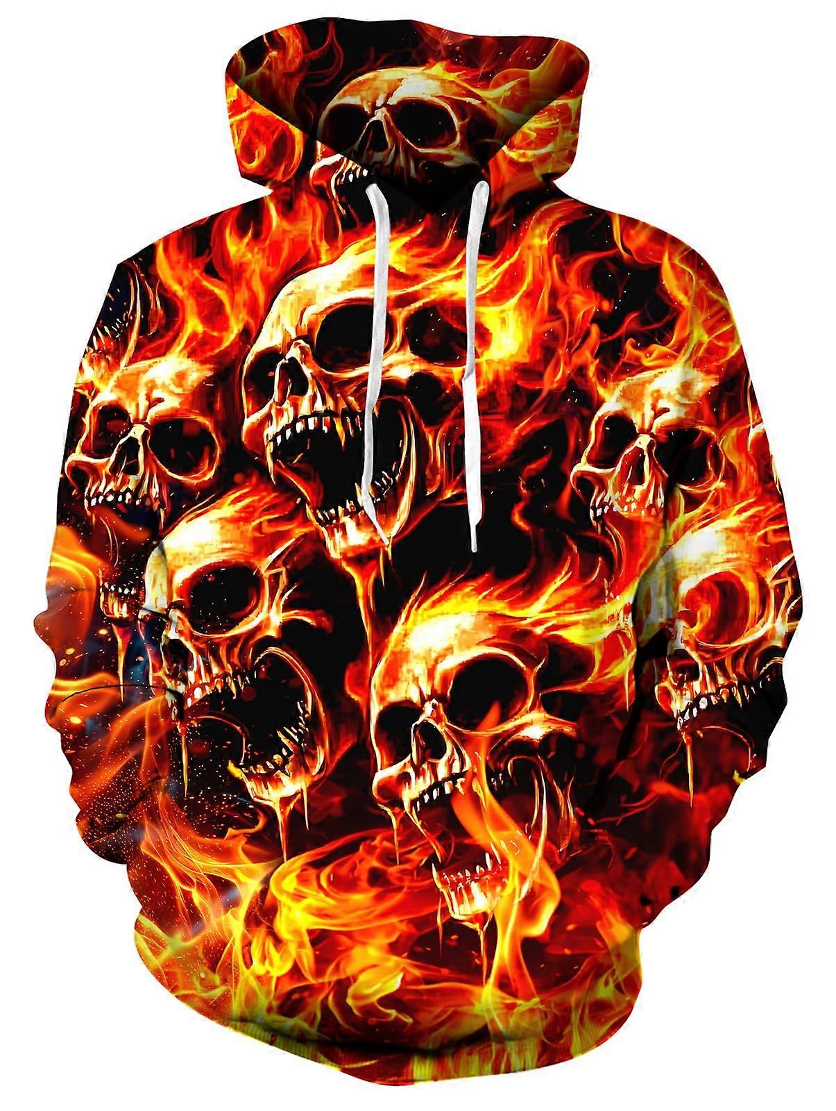 Men's Flaming Skull 3D Print Hoodie - Bold Fire Pattern Casual Pullover Hooded Sweatshirt