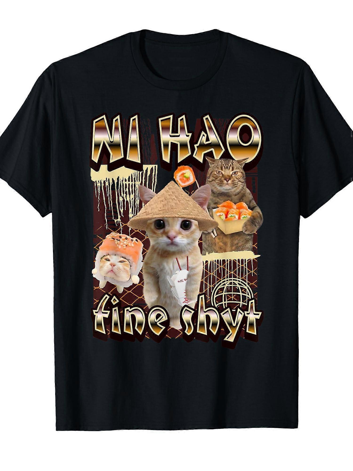 Men's Funny Gen Z Meme T-Shirt - Chinese Characters & Cute Cats in Hats Graphic Tee
