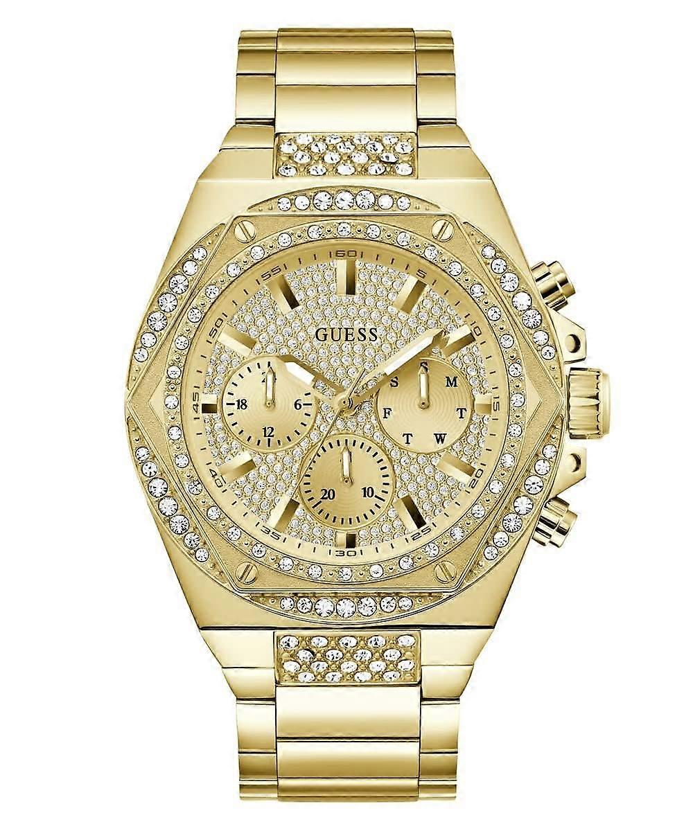 Men's Gold Champagne Fury Watch GW0899G2Discover elegance redefined with the Men's Gold Champagne Fury Watch GW0899G2 from Guess Watches. This luxury timepiece is crafted with precision to elevate your style while promising durability and sophistication.The watch features a stunning recycled steel case in a radiant gold color, capturing attention with its impeccable round shape. Measuring 47 mm in diameter and 11.2 mm in thickness, it offers a substantial presence on your wrist while remaining comfortably lightweight at just 174 grams.The exquisite champagne-colored glitz dial adds a touch of glamour to your ensemble. Protected by a sturdy mineral lens, this dial ensures clarity and resilience against the elements. Case Material - Recycled Steel Case Colour - Gold Case Shape - Round Case Dimension - 47 mm Case Thickness - 11.2 Dial Crystal Type - Mineral lens Dial - Glitz Dial Colour - Champagne Attachment Buckle/Clasp Material - Pilot Buckle Strap Material - Stainless Steel Strap Colour - Gold Tone Strap Band Width (mm) - 27.5mm Strap Band Length (mm) - 197 Buckle - Pilot Buckle Mechanism - Quartz Analog Water Resistance (ATM) - 50 Product Weight (Grams) - 174 Warranty - 2 Years This remarkable watch is equipped with an accurate quartz analog mechanism, ensuring you stay punctual and stylish at all times. The pilot buckle clasp secures the watch comfortably, allowing for adjustable strap lengths of 197 mm and a width of 27.5 mm for a perfect fit.Each Men's Gold Champagne Fury Watch GW0899G2 comes beautifully packaged in elegant Guess packaging, complete with a gift bag, box, and a certificate of authenticity. Backed by a 2-year warranty covering any manufacturing defects, you can purchase this luxurious watch with complete confidence.Upgrade your accessory collection with this eye-catching watch that embodies the essence of luxury and sophistication Discover the world of Acotis Diamonds, where exceptional craftsmanship and timeless elegance come together to create jewellery designed to be treasured for a lifetime. Every piece in our collection is thoughtfully curated and masterfully finished, reflecting our commitment to quality, artistry, and enduring style. From radiant diamonds to lustrous precious metals and contemporary designer creations, Acotis Diamonds offers jewellery that celebrates individuality, sophistication, and the beauty of fine detail. Our range is crafted using only the finest materials, ensuring every item meets the highest standards of brilliance and durability. Whether it’s the sparkle of meticulously cut diamonds, the rich sheen of gold and sterling silver, or the vibrant hues of carefully selected gemstones, each piece is chosen to deliver exceptional clarity and lasting allure. We partner with leading jewellery designers and trusted global brands to bring you collections that blend modern aesthetics with classic inspirations, offering something to suit every personality and occasion.At Acotis Diamonds, we believe jewellery should be as meaningful as it is beautiful. That’s why we focus on craftsmanship that captures life’s most precious moments—whether it’s a gift to mark a milestone, a token of affection, or a personal investment in everyday luxury. Our designers pay close attention to every curve, facet, and setting, ensuring unmatched comfort, balance, and visual appeal. Each piece undergoes rigorous quality checks, so you can feel confident that your jewellery is made to endure, shine, and be cherished for years to come. From elegant bracelets and necklaces to statement earrings, refined rings, and collectible charms, our diverse range allows you to express your style with effortless sophistication. Whether you prefer understated minimalism, bold contemporary design, or timeless traditional beauty, Acotis Diamonds provides jewellery that enhances every moment with subtle glamour and refined detail. Experience the artistry of fine jewellery with Acotis Diamonds—where superior craftsmanship, exceptional quality, and thoughtful design come together to create pieces that truly shine.