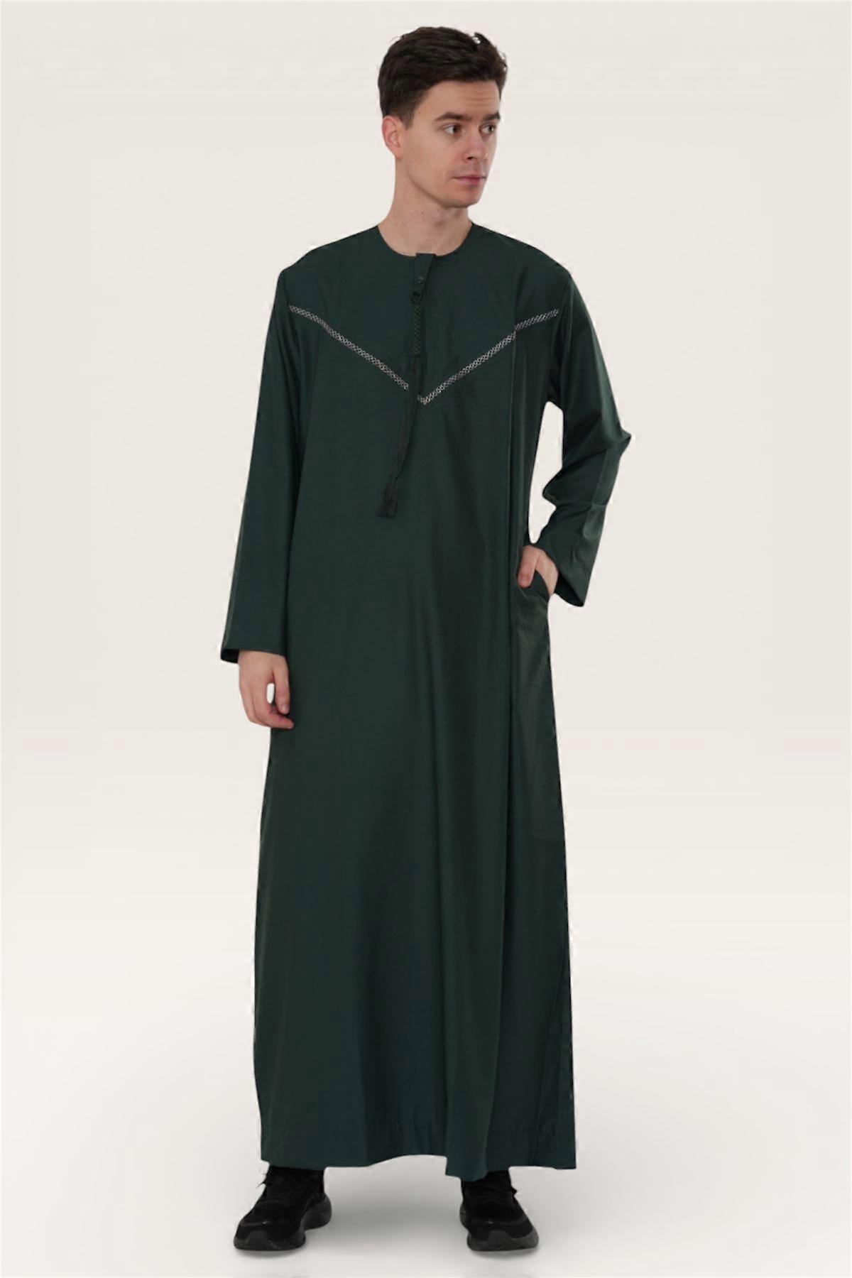 Men's Green Moroccan Embroidered Djellaba Islamic Jubba Robe Tassel Ramadan Thobe