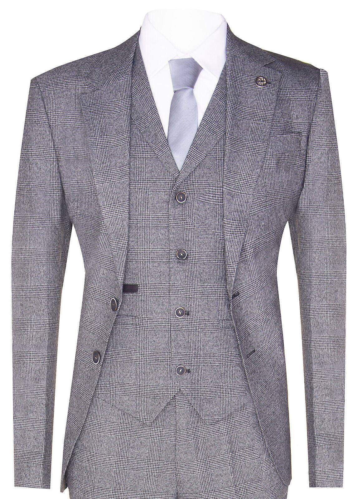 Mens Grey 3 Piece Suit Prince of Wales Wedding Suit
