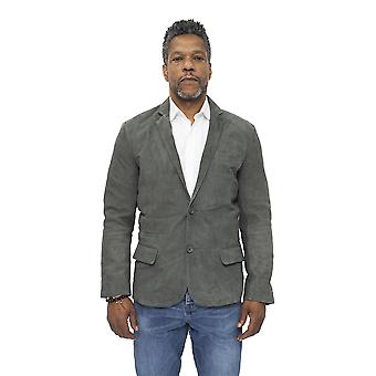 Men's Grey Brown Suede Jacket Soft Italian Leather Coat
