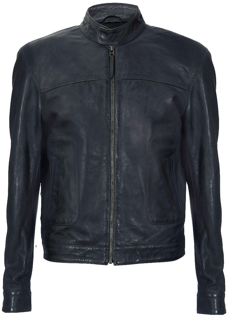 Mens Grey Soft Leather BIKER Rock Zipper Jacket