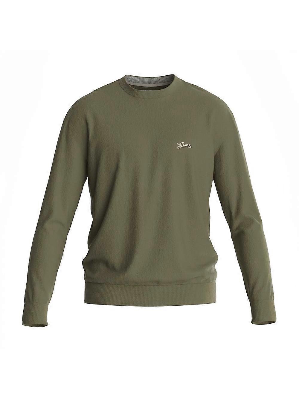 Pull Guess Classic Homme Kaki Synthétique. Authentique Vetement de la marque Guess - mode Guess pour Homme qui aime le style - parfait pour la vie de tous les jours - Pull Guess de couleur Kaki s'associe parfaitement avec le reste de votre vestiaire - matiere Synthétique confortable - classique - tenue Guess - - Classic Guess