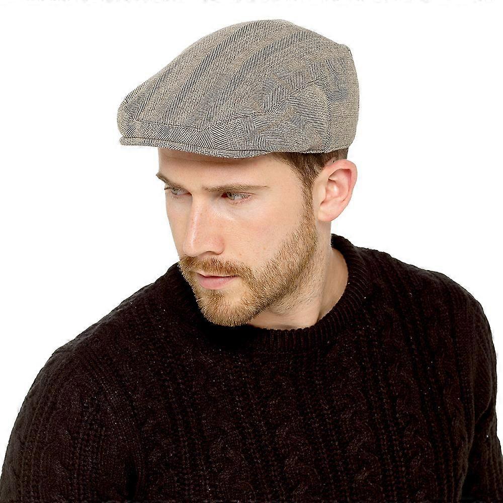 CLASSIC HERRINGBONE DESIGN:Crafted in a timeless herringbone pattern, this mens flat cap delivers a refined vintage look ideal for everyday wear. Perfect for pairing with smart or casual outfits, it adds a sophisticated finishing touch to autumn, winter and spring styles while maintaining a distinctly British aesthetic suitable for all ages.COMFORTABLE & LIGHTWEIGHT FEEL:Designed for long wear, the cap features a soft polyester lining that feels smooth against the skin. Its lightweight yet warm construction ensures comfort in cooler weather without adding unnecessary bulk, making it perfect for commuting, outdoor walks, social outings and day-to-day use throughout the year.QUALITY MATERIAL BLEND: Made from a premium 92% polyester and 8% wool outer shell with a 100% polyester inner lining, this cap provides warmth, durability and breathability. The fabric holds its shape well, resists creasing and offers a soft textured finish, giving you a reliable accessory that is built to last and easy to maintain.SECURE & FUNCTIONAL FIT: The structured peak helps shield your eyes from sunlight while the shaped crown ensures a comfortable, secure fit. Designed for practicality as well as style, this men�s ivy hat stays in place during daily activities, making it ideal for driving, walking, travelling or smart casual occasions.AVAILABLE IN STYLISH COLOURS & SIZES: Offered in Grey Herringbone, Dark Grey, Sand Brown and Navy Blue, this cap complements a wide range of outfits. Available in sizes M/L and L/XL, it provides a generous, comfortable fit, making it an ideal gift choice for birthdays, Father�s Day, Christmas or any man who appreciates timeless accessories.