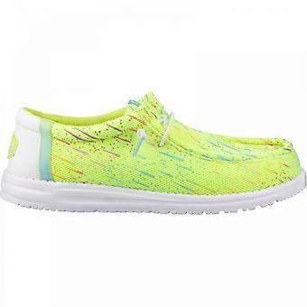 Men's HEYDUDE Wally Party Mesh | Lime Punch/White | Mens Elastic Lace Casual Shoes