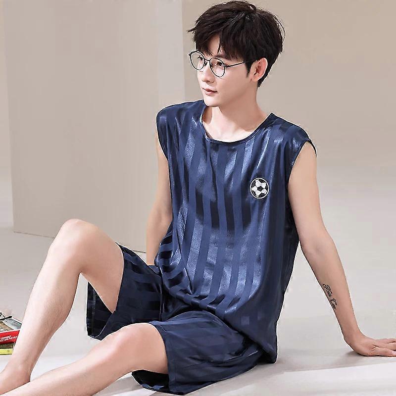 Men's Ice Silk Summer Pajamas Set, Sleeveless Plus Size 4xl 5xl, Casual