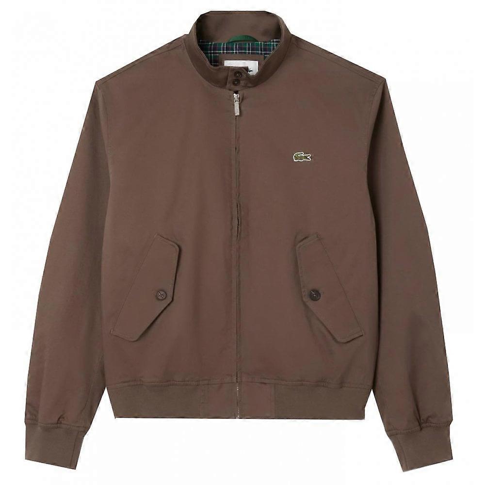 Men's Lacoste Menswear Lacoste Men's Brown Water Repellent Twill Harrington Jacket