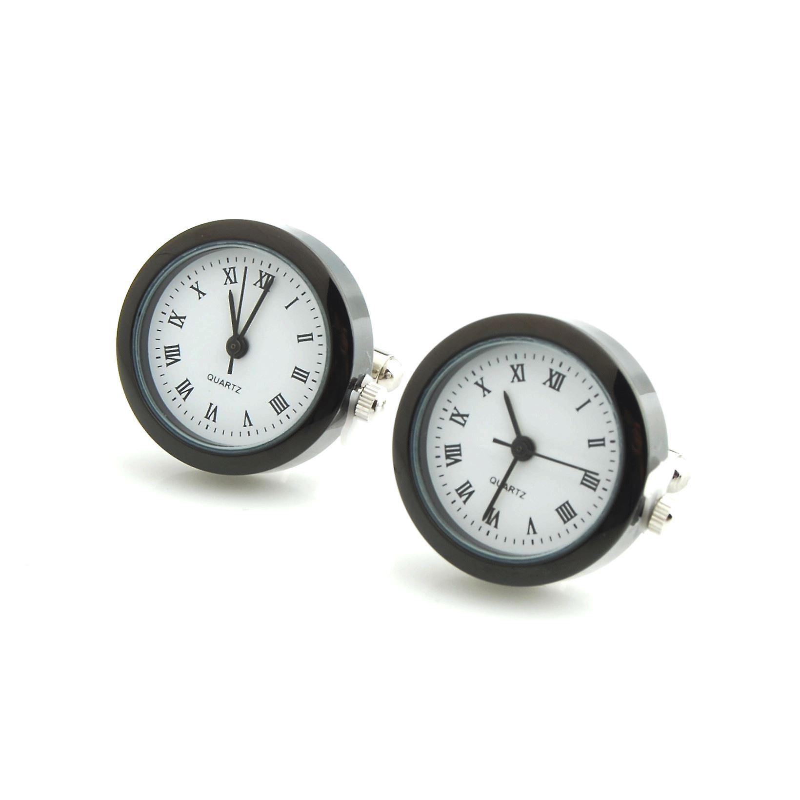 Mens Ladies Working Black Stainless Steel Clock Watch Cufflinks Wedding Formal Business