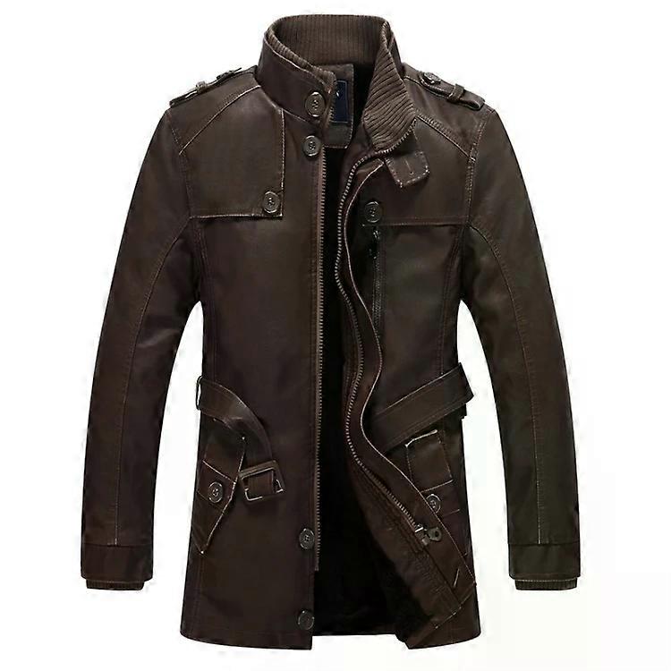 Men's Long Leather Jacket Coat-Stylish Brown Design,Size M Brown,M
