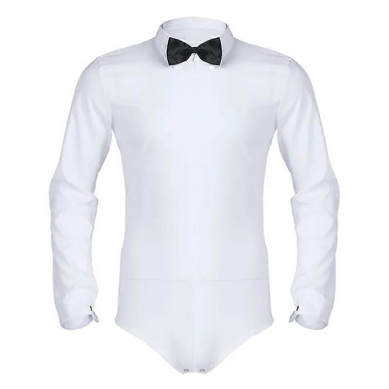 Men's Long Sleeve Zipper Solid Latin Dance Shirt With Bowtie Romper - Modern