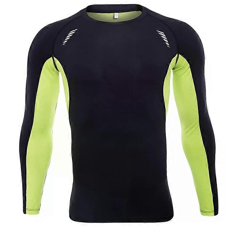 Men's Long-Sleeved Workout Shirt-Elastic,Sporty Design,Black/Green-Black Green,L