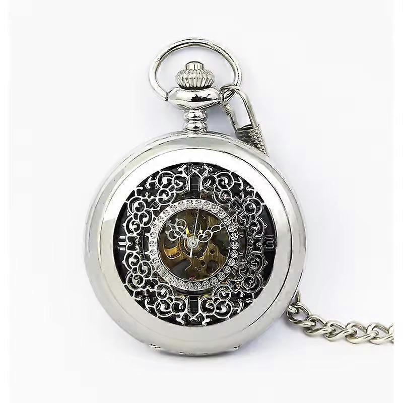Men's Mechanical Skeleton Half Hunter Antique Brass Retro Alloy Pocket Watch with Chain