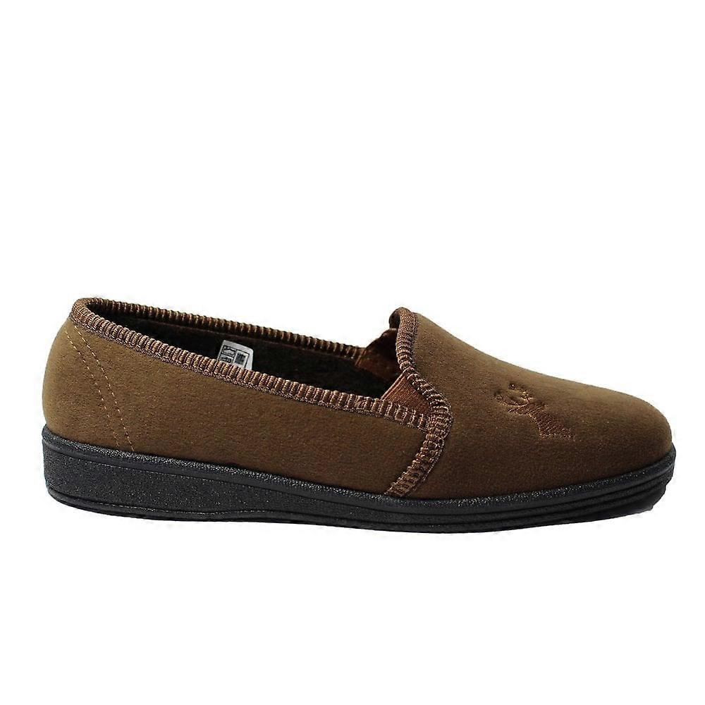 Step into comfort with the Mirak Stag Slippers — a stylish choice for relaxed evenings and cosy mornings. Crafted from soft microfibre fleece and detailed with a striking embroidered stag design, these slippers feel as good as they look. The lightweight, flexible rubber sole makes them ideal for everyday wear and lasting comfort.Uppers: Textile Linings: Textile Insoles: Textile Fastenings: Slip On Soles: Rubber Heel Height: 30 mm Made in Spain Width: Standard