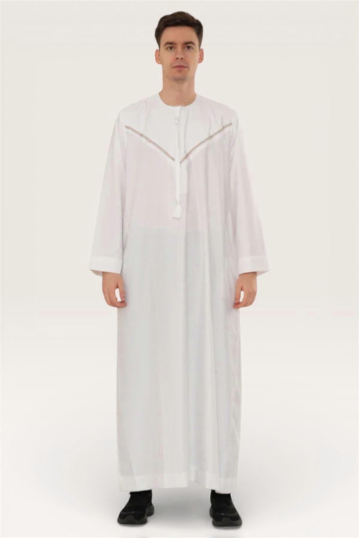 Men's Moroccan Embroidered Djellaba Islamic Jubba Robe Tassel Ramadan Thobe