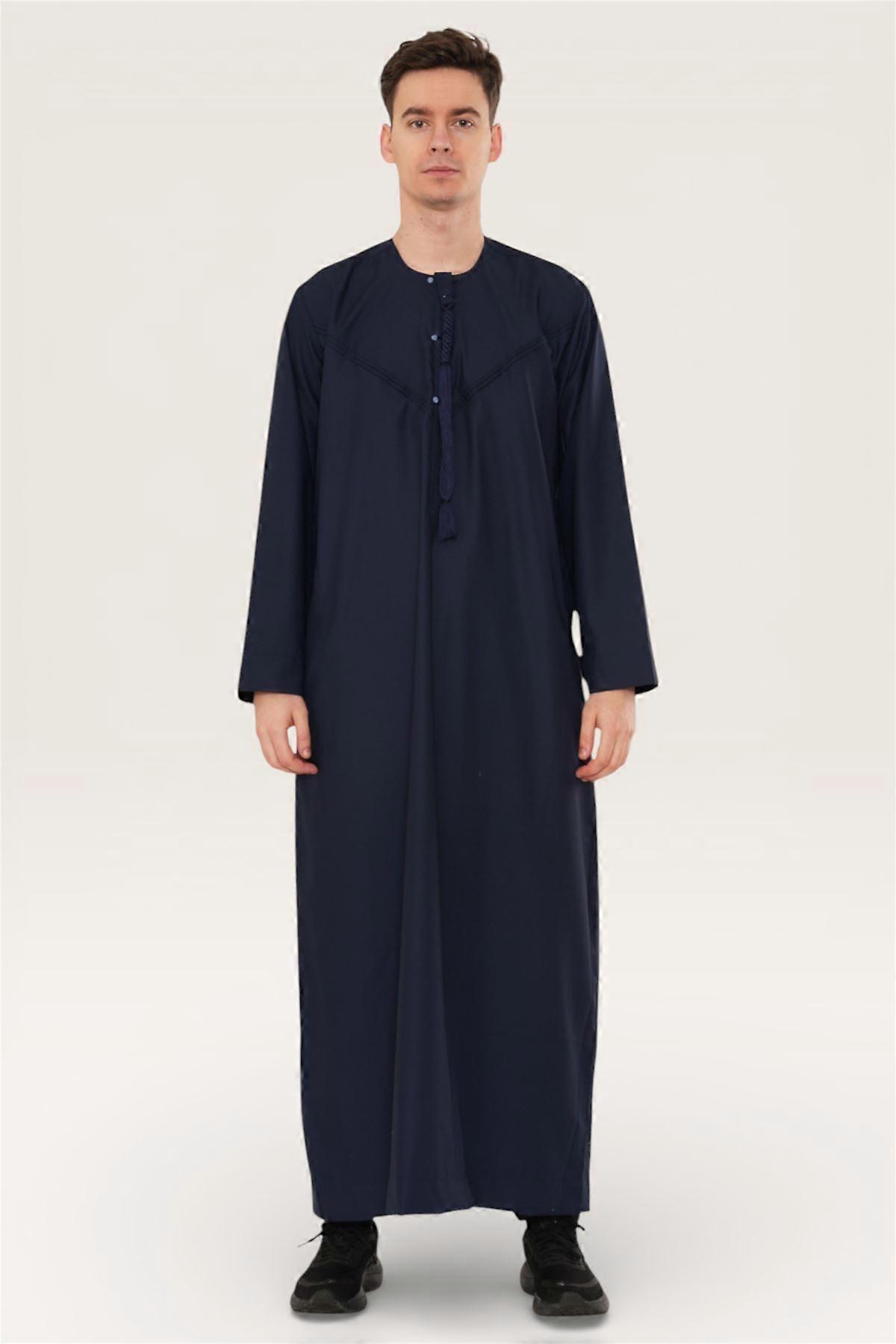 Men's Navy Blue Moroccan Djellaba Islamic Jubba Robe Tassel Zipped Ramadan Eid Thobe