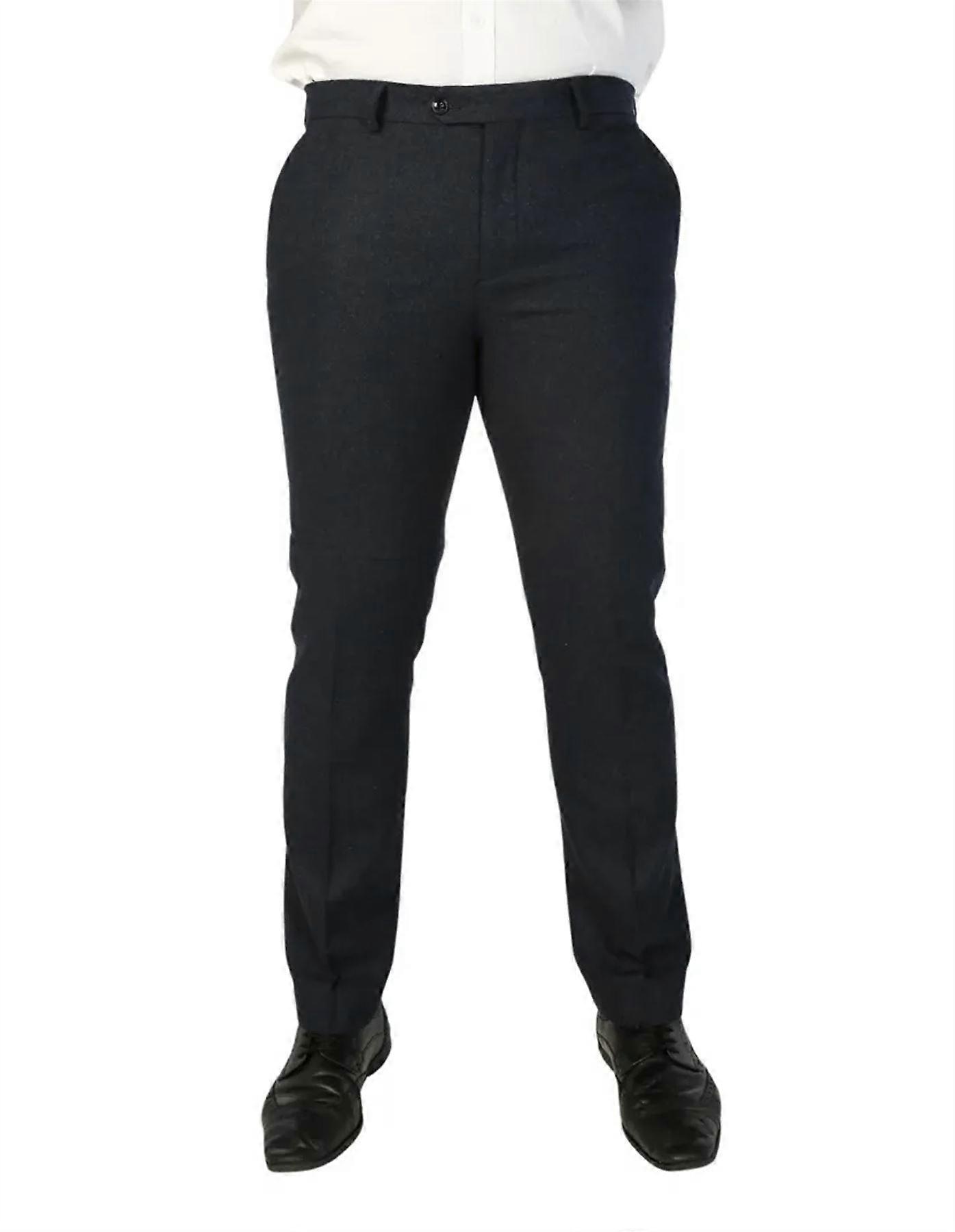 Men's Navy Blue Wool Blend Tweed Formal Trousers