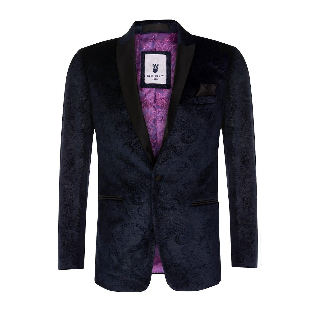 Mens Navy Velvet Paisley Blazer Dinner Jacket