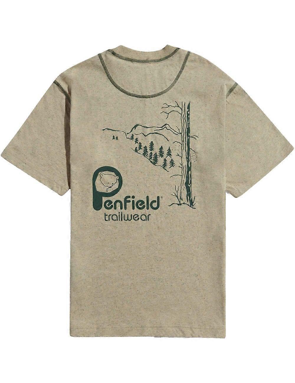 The Penfield Trailwear T-Shirt blends comfort, versatility, and a touch of outdoor-inspired style — ideal for everyday wear or weekend adventures. Made from 100% cotton, it offers a soft, breathable feel that ensures all-day comfort, while the relaxed fit gives it an easy, laid-back silhouette. The classic crew neck and short sleeves keep things simple and timeless, making it a reliable go-to piece that pairs effortlessly with jeans, shorts, or outdoor layers. Adding to its appeal, the Trailwear T-Shirt features Penfield’s distinctive branded prints on both the front and back, celebrating the brand’s long-standing connection to outdoor living and adventure. Whether you’re exploring the trails or taking it easy in the city, this tee delivers comfort, durability, and understated style — hallmarks of Penfield’s quality craftsmanship since 1975. Since 1975, Penfield has been a trusted name in outdoor apparel, crafting durable, weather-ready clothing designed to withstand the elements. Embrace the spirit of adventure and explore our full Penfield collection today.Penfield Trailwear T-Shirt Brown Rice 100% cotton construction for softness and breathability Relaxed fit for all-day comfort and movement Classic crew neck and short sleeves for a timeless look Penfield branded print on front and back Inspired by Penfield’s heritage of outdoor exploration and craftsmanship PFD0685-P28 Description By: APM