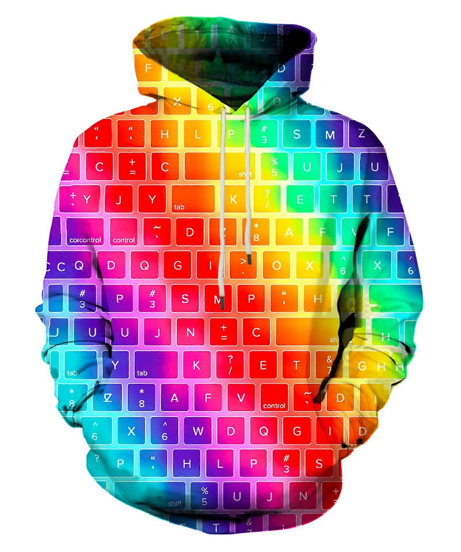 Men's Rainbow Keyboard All-Over Print 3D Hoodie Tech Theme Graphic Pullover Casual Novelty Sweatshirt