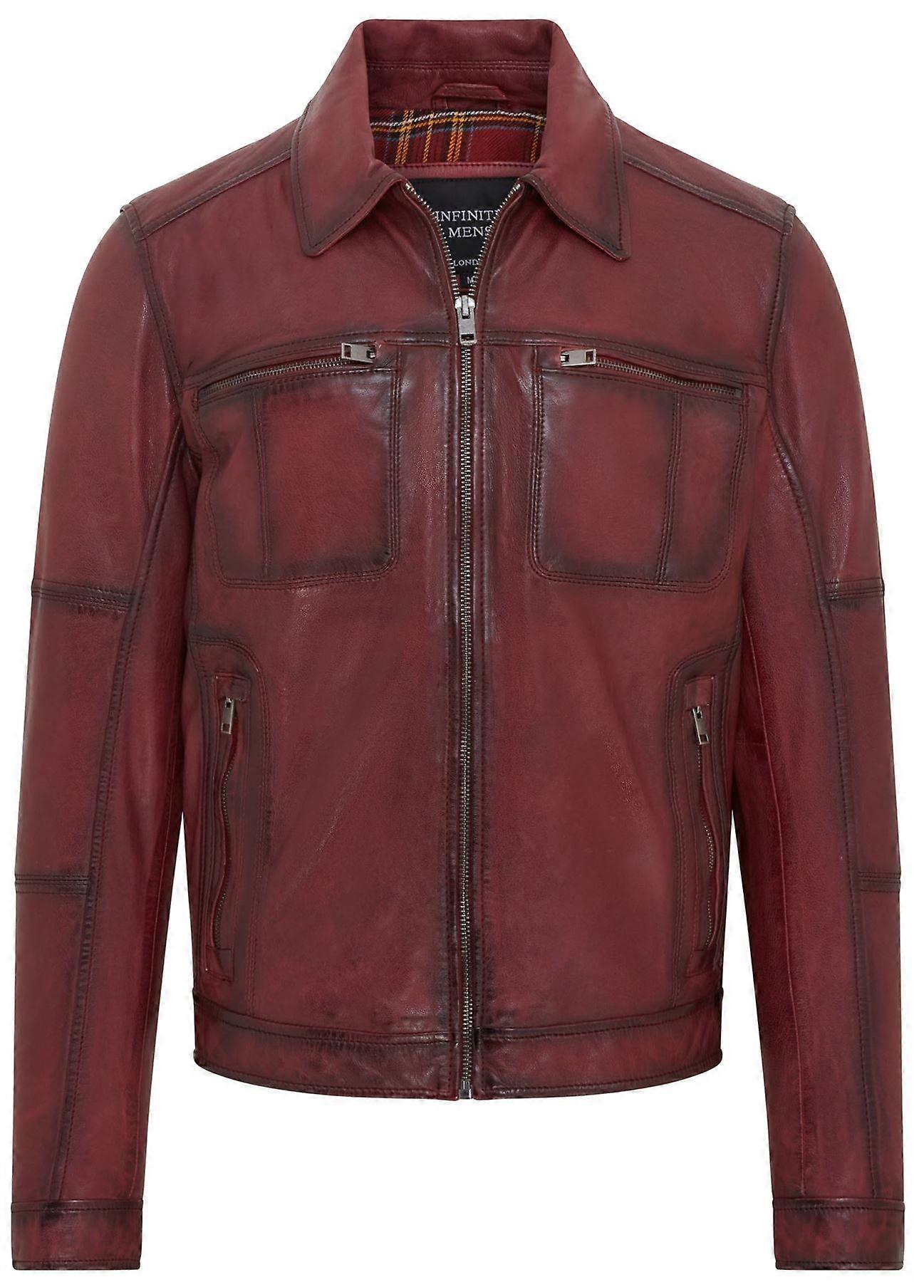 Men's Red Vintage Classic Short Soft Leather Biker Jacket