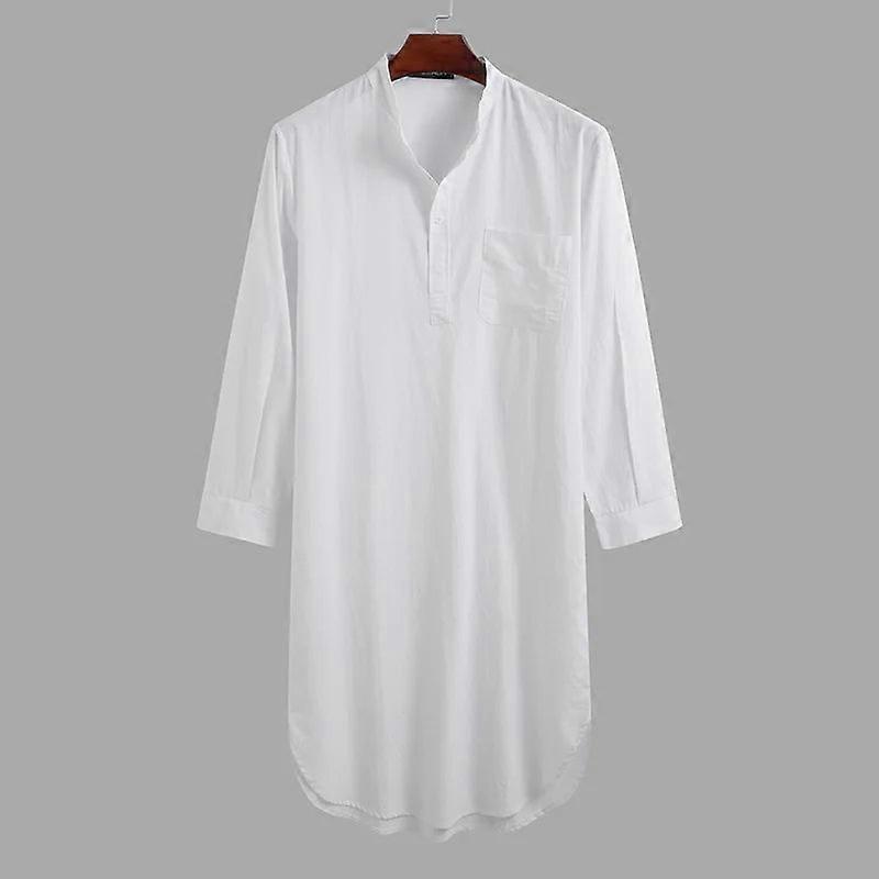 Men's Retro Stand Collar Long Sleeve Pocket Button-down Nightgown Sleep Robes,