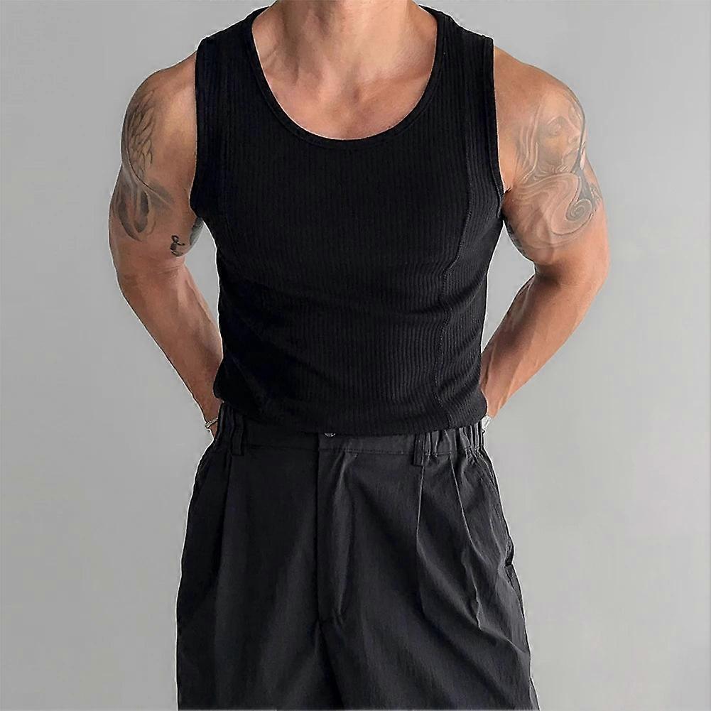 Men's Ribbed Sleeveless Tank Top Fitness Gym Vest Sports Activewear. Elevate Your Style with This Chic Men's Tank Top, Perfect for Every Season. Crafted from Premium Polyester Broadcloth, This Versatile Tank Top is Designed for Comfort and Style. Available in Classic Black and White, It Features a Sleek Ribbed Texture with a Vertical Stripe Pattern, Making It a Standout Piece for Casual or Active Wear. Whether You're Heading to an Interview, Office, or Hitting the Beach, This Sleeveless Top Ensures You Look Sharp and Feel Comfortable. Tailored for a Slim Fit, This Tank Top Offers a Classic O-neck Design and Regular Length, Making It Ideal for Daily Wear or Special Occasions. Its Solid Pattern and Timeless Appeal Ensure It Complements Any Wardrobe. Blend It with Jeans or Shorts for a Relaxed Vibe, or Layer It Under a Blazer for a More Polished Look.