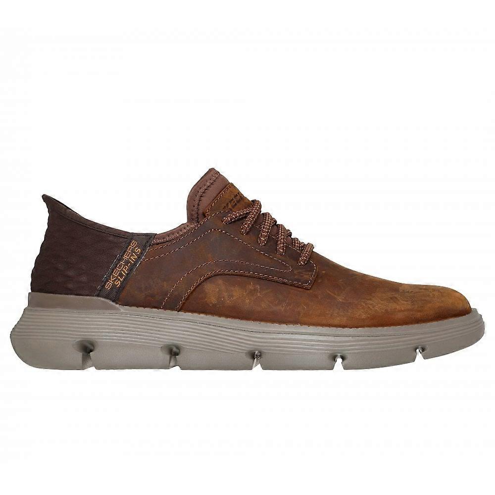 Upgrade your workday wardrobe with the Skechers Hands Free Slip-ins®: Garza - Gervin, the perfect blend of business casual shoes and cutting-edge comfort. Designed for ultimate convenience, this hands-free dress shoe features Skechers’ exclusive TOUCHLESS FIT® technology, letting you slide in and out without bending or fuss. Crafted from smooth, premium leather with modern Oxford styling, this versatile slip-on includes stretch laces for a polished look without sacrificing ease. Inside, the charcoal-infused Skechers Air-Cooled Memory Foam® insole ensures freshness and cushioning, while the Goga Mat Arch™ provides extra support for those long office days.Fastenings: Slip On /Elastic Lace Width: Wide Uppers: Leather/Textile Linings: Textile Insoles: Textile Outer Soles: Man Made Features: Memory Foam Insoles